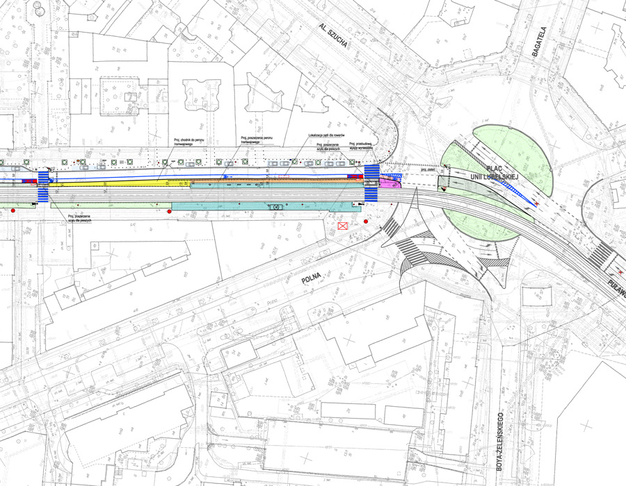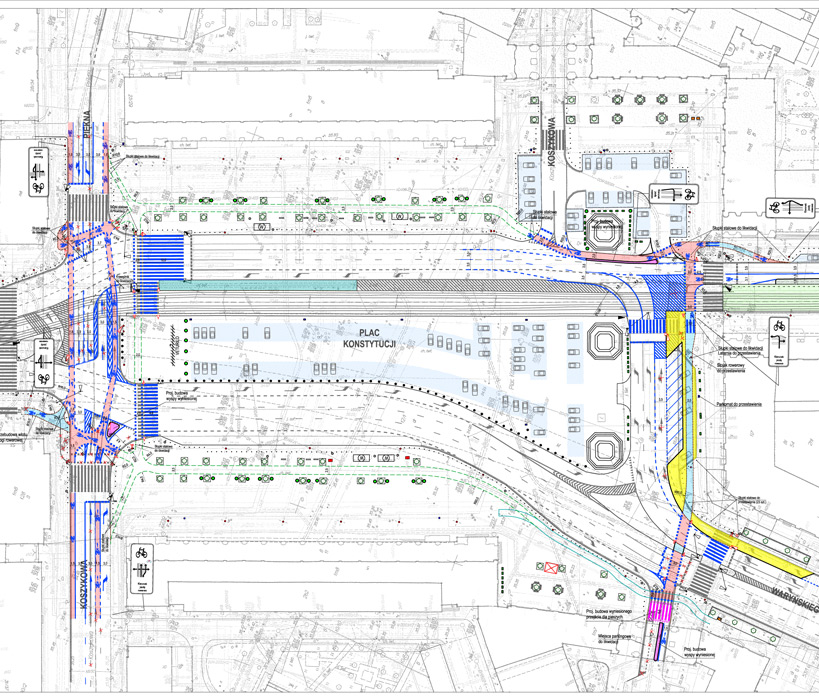 W ramach opracowania wytyczono kontrapas na ul. Marszałkowskiej na odcinku od pl. Konstytucji do pl. Unii Lubelskiej, dokonano szeregu zmian w organizacji ruchu i wprowadzono wiele nowatorskich rozwiązań w obrębie pl. Konstytucji. Ponadto dokonano analizy zmian w sygnalizacjach świetlnych objętych opracowaniem z uwzględnieniem priorytetu tramwajowego, przygotowano koncepcję zagospodarowania zielenią oraz zmian infrastruktury pieszej m.in. zaprojektowano nowe chodniki, azyle, perony przystankowe. Ponadto w ramach koncepcji zespół projektowy wykonał prognozy ruchu metodą modelowania sieciowego oraz mikrosymulację ruchu na zmienianym odcinku wraz z wizualizacją.