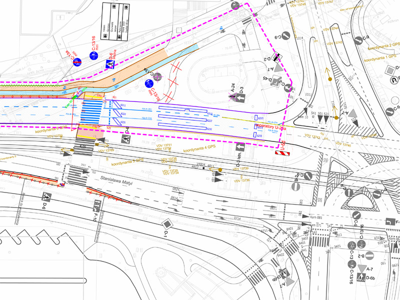 Stadtraum Polska Sp. z o.o. podjęło się tego zadania i wykonało koncepcję, projekt drogowy, projekt organizacji ruchu, projekt sterowania ruchem. Nasze biuro świadczyło także nadzór autorski.