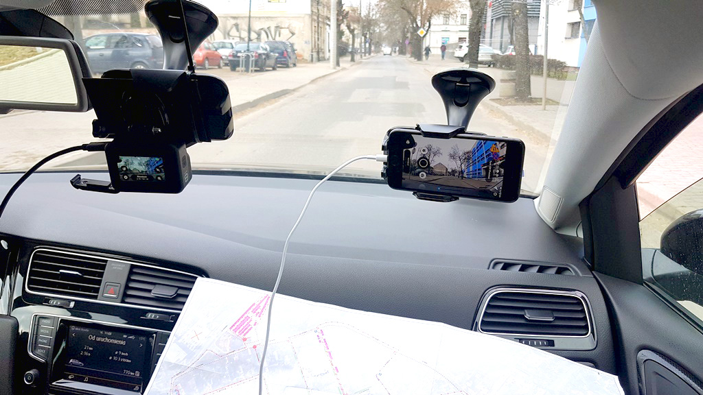 Uzupełniająco zarejestrowaliśmy materiał wideo z pomiarów. Dane w obydwu formach były gromadzone w trakcie przejazdów specjalnie przygotowanym